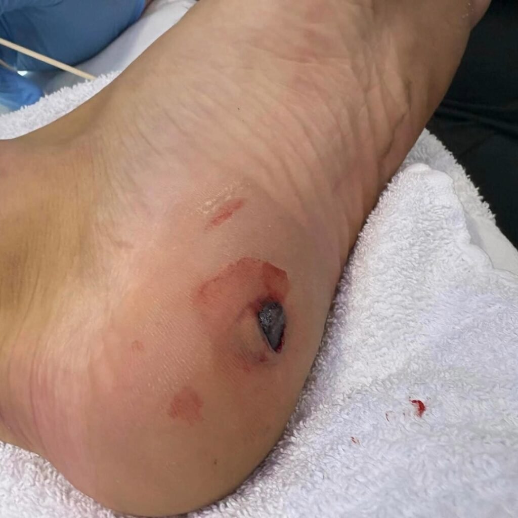 The 24-year-old stood on a stone chip at Mitre 10 Park Hawke’s Bay transitioning from the pool to the bike at the continental Mixed Relay Championships. When we say stood, we really mean impaled himself on the stone which lodged itself deeply in the Sydney-based Kiwi’s left heel.