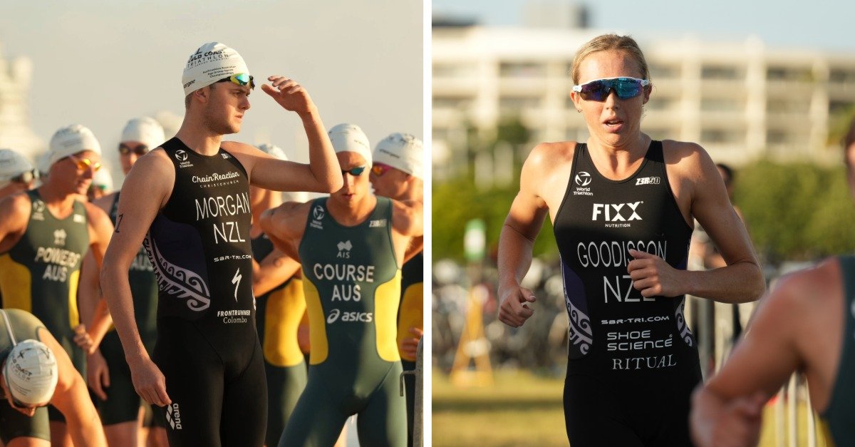 That was the happy but not content message from the leading Kiwis in Sunday’s Oceania Triathlon Cup Gold Coast after Saxon Morgan and Eva Goodisson finished 4th in the respective men’s and women’s races at Broadwater.