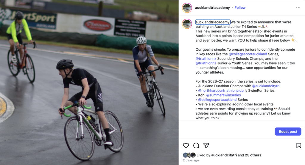 The Auckland Youth Triathlon Academy is a community-driven initiative and needs community backing. Fundraising initiatives to get coaches to key races and to expand opportunities for promising athletes are already in motion. Upcoming efforts include: