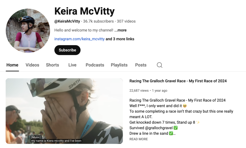 McVitty is on the comeback trail from significant hip surgery. She’s also a wicked content creator and is charting her comeback via her 50k+ sub Instagram account and excellent YouTube channel. You should 100 percent check those out and give her a hearty cheer as she whizzes by on Sunday.