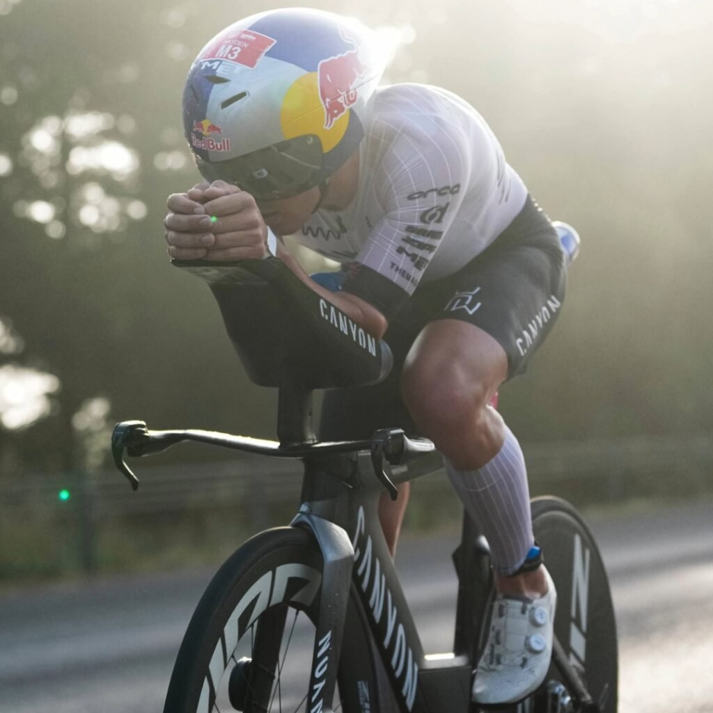 After exiting the water just off the leaders, he surged to the front early on the bike and drove the pace, before launching a decisive move mid-race that fractured the field.